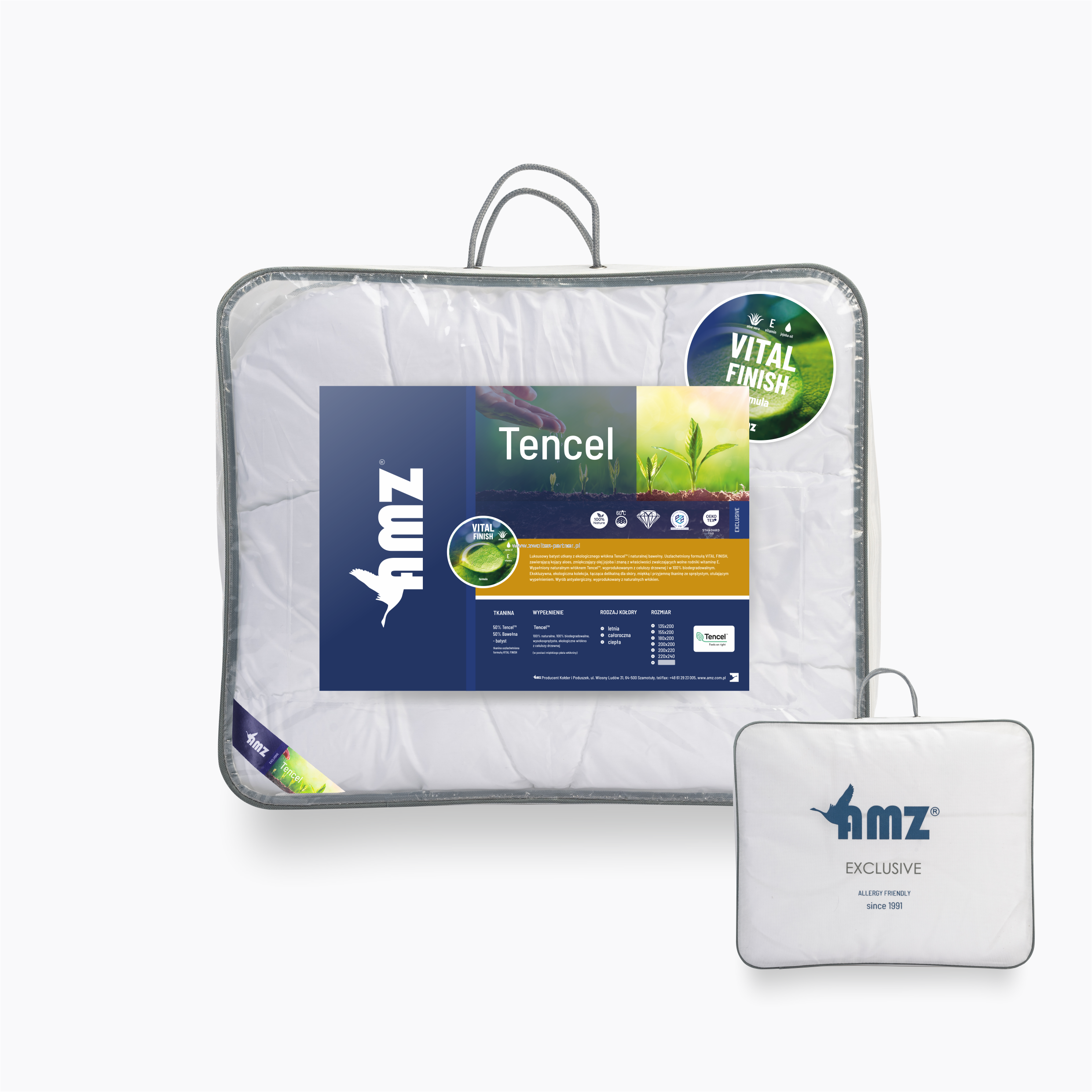 Kolekcja Tencel należy do linii produktów antyalergicznych. Kołdry i poduszki pokryte są tkaniną, która łączy korzystne właściwości bawełny i Tencelu, dzięki czemu jest gładka, wytrzymała i przyjazna dla skóry. Zastosowano w 100% antyalergiczne i biodegradowalne wypełnienie wyrobów. Produkty zapewniają spokojny sen nawet wyjątkowo wrażliwym użytkownikom.
