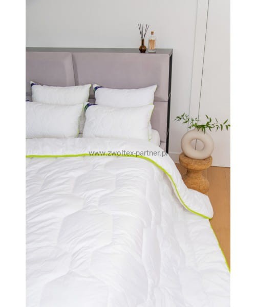 Kołdra pikowana na nowoczesnych maszynach, gwarantujących równomierne rozłożenie wypełnienia. Produkt starannie wykończony, wyprodukowany z najwyższej jakości materiałów. Zapewnia odpowiednią cyrkulację powietrza oraz optymalny poziom wilgotności, a więc niesprzyjające warunki do rozwoj roztoczy oraz innych drobnoustrojów.