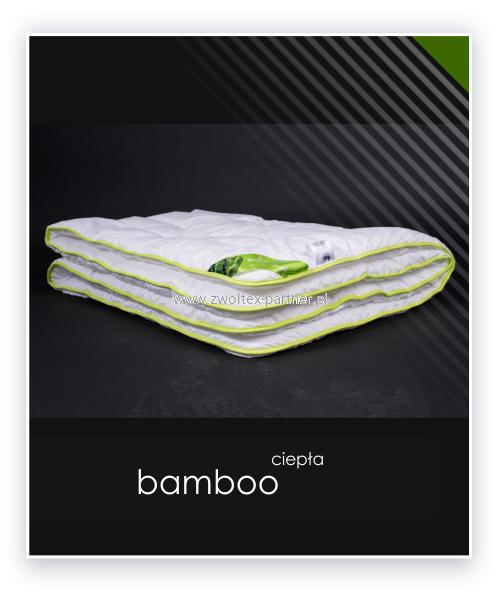 Materiał pokryciowy to innowacyjna tkanina, łącząca najlepsze cechy bawełny i bambusa. Bawełna zapewnia miękkość, a bambus nadaje tkaninie aksamitności oraz właściwości antybakteryjnych i antygrzybicznych.