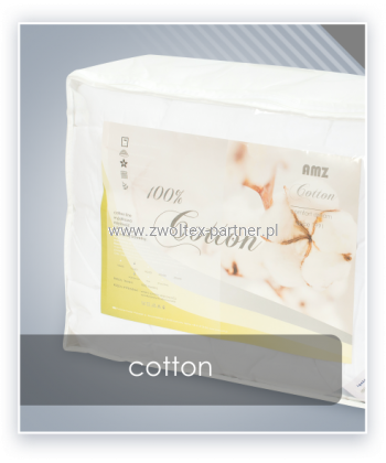COTTON to kolekcja syntetycznych wyrobów pokryta tkaniną bawełnianą, wypełniona nowoczesnym włóknem AMZ DREAMFILL. Przeznaczone dla osób szukających klasyczne produkty antyalergiczne pokryte bawełną w umiarkowsnej cenie.