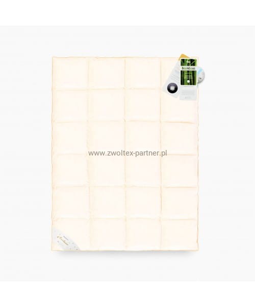 Szycie i wykończenie: kołdra o budowie kasetonowej - szyta w technologii ciepłego szwu zapewniającemu lepsze właściwości termoizolacyjne. Kratki są szczelnie zamknięte uniemożliwiając przemieszczaniu się wypełnianiu pomiędzy komorami.