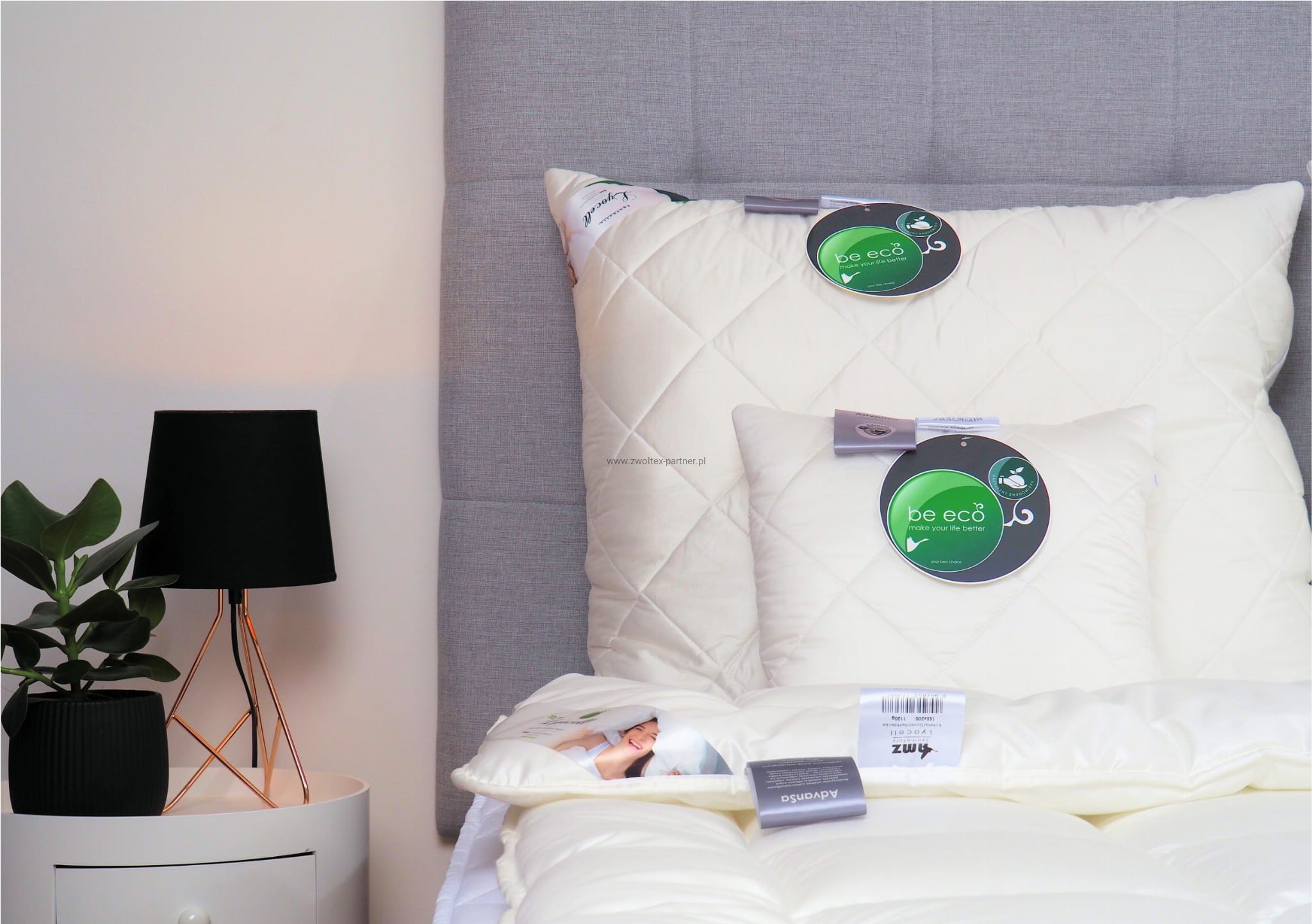 Konserwacja: możliwość prania w pralce w warunkach domowych oraz szybkie schnięcie wyrobów pozwala łatwo zachować go w czystości. A maksymalna dozwolona temperatura prania 60 st. C pozwala na wyeliminowanie roztoczy oraz innych drobnoustrojów.
