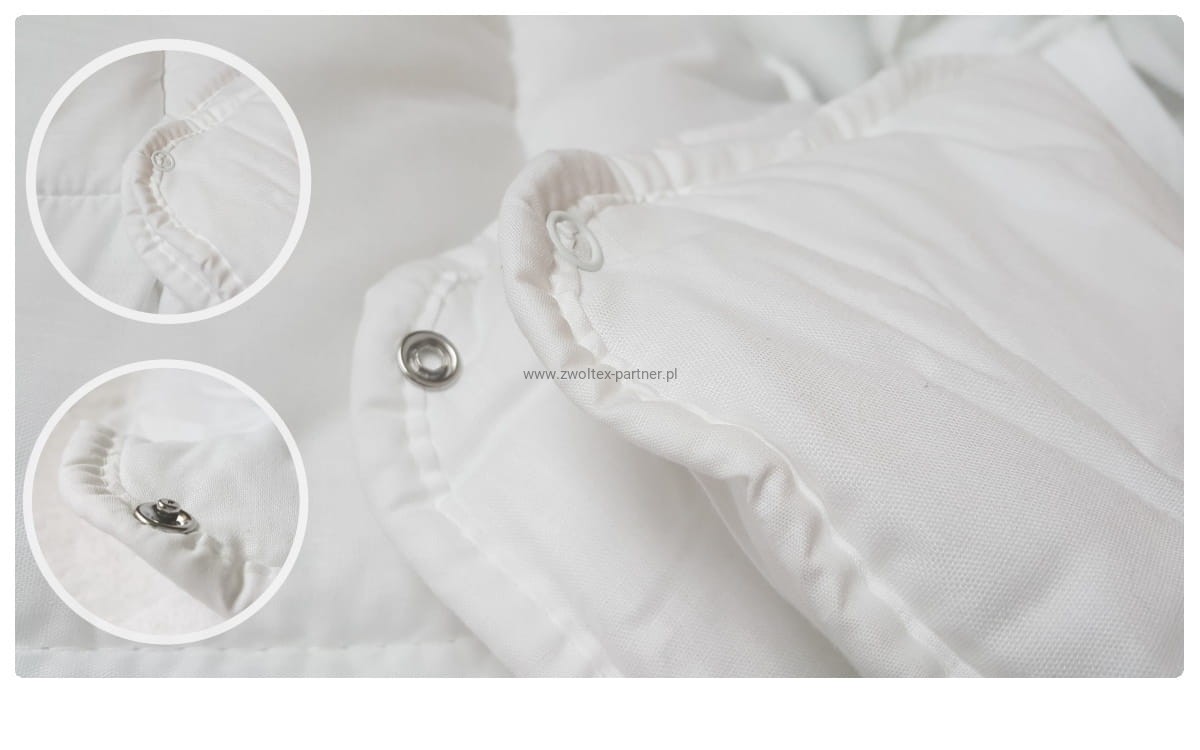 Kołdra antyalergiczna Medical 4 Pory Roku to produkt, który doskonale spełnia najwyższe wymagania jakościowe i użytkowe. Pranie w wysokich temperaturach eliminuje szkodliwe dla człowieka drobnoustroje. Jest zatem idealny dla osób ze skłonnościami alergicznymi. Kołdra Medical jest szczególnie polecana dla hoteli i pensjonatów jako towar niezwykle trwały i odporny na długi okres użytkowania. Kołdra 4 Pory Roku - składa się z połączenia dwóch kołder - letniej i całorocznej spinanymi ze sobą metalowymi napami. Właściwości wypełnienia: włókna poliestrowe Hollow, termicznie skręcane, posiadające spiralny kształt i wysoką sprężystość. Zapewniają doskonałą izolację cieplną i puszystość. Sprawiają, że ludzkie ciało podczas snu oddycha. Przeciwdziałają osadzaniu się kurzu. Charakteryzują się właściwościami antyalergicznymi.