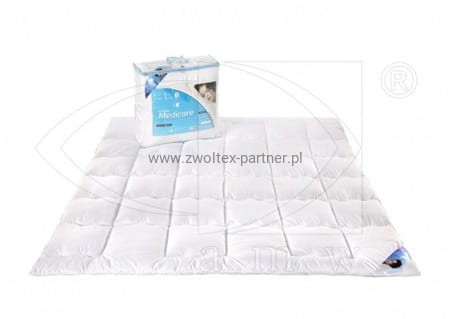 Kołdra MEDICARE jest wyjątkową odmianą kołdry, przeznaczoną dla osób o skłonnościach alergicznych. Ten wyrób charakteryzuje się doskonałą przepuszczalnością powietrza i wilgoci. Utrzymuje temperaturę ciała na stałym poziomie, a zarazem daje możliwość odpoczynku dla ludzkiego organizmu w optymalnych warunkach.