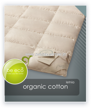 Kolekcja ORGANIC COTTON pokryta jest wyjątkowo miękkim inletem o wyjątkowo pięknym kolorze niebielonej bawełny – delikatny krem. Skład tkaniny to 100% bawełna organiczna o szlachetnym splocie batystowym. Ten delikatny splot i najwyższa jakość przędzy uprawianej metodami tradycyjnymi zapewnia tkaninie niesamowitą delikatność.