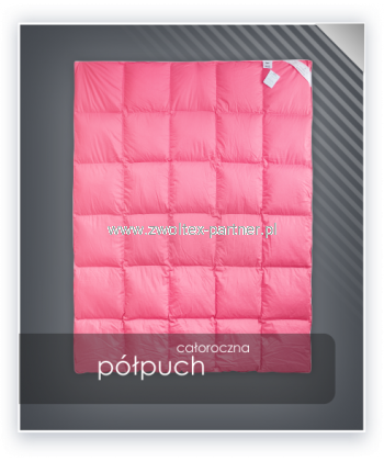 Kolekcja PÓŁPUCH to kolekcja wypełniona półpuchem gęsim 20%. Wyroby zostały mocnym inletem bawełnianym o gramaturze 185 g/m2. To wyroby produkowane metodami tradycyjnymi dla osób ceniących produkty naturalne w umiarkowanej cenie.