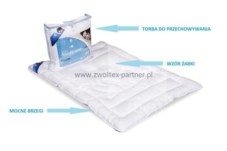 Kołdra MDICARE jest wyjątkową odmianą kołdry, przeznaczoną dla osób o skłonnościach alergicznych. Ten wyrób charakteryzuje się doskonałą przepuszczalnością powietrza i wilgoci. Utrzymuje temperaturę ciała na stałym poziomie, a zarazem daje możliwość odpoczynku dla ludzkiego organizmu w optymalnych warunkach.