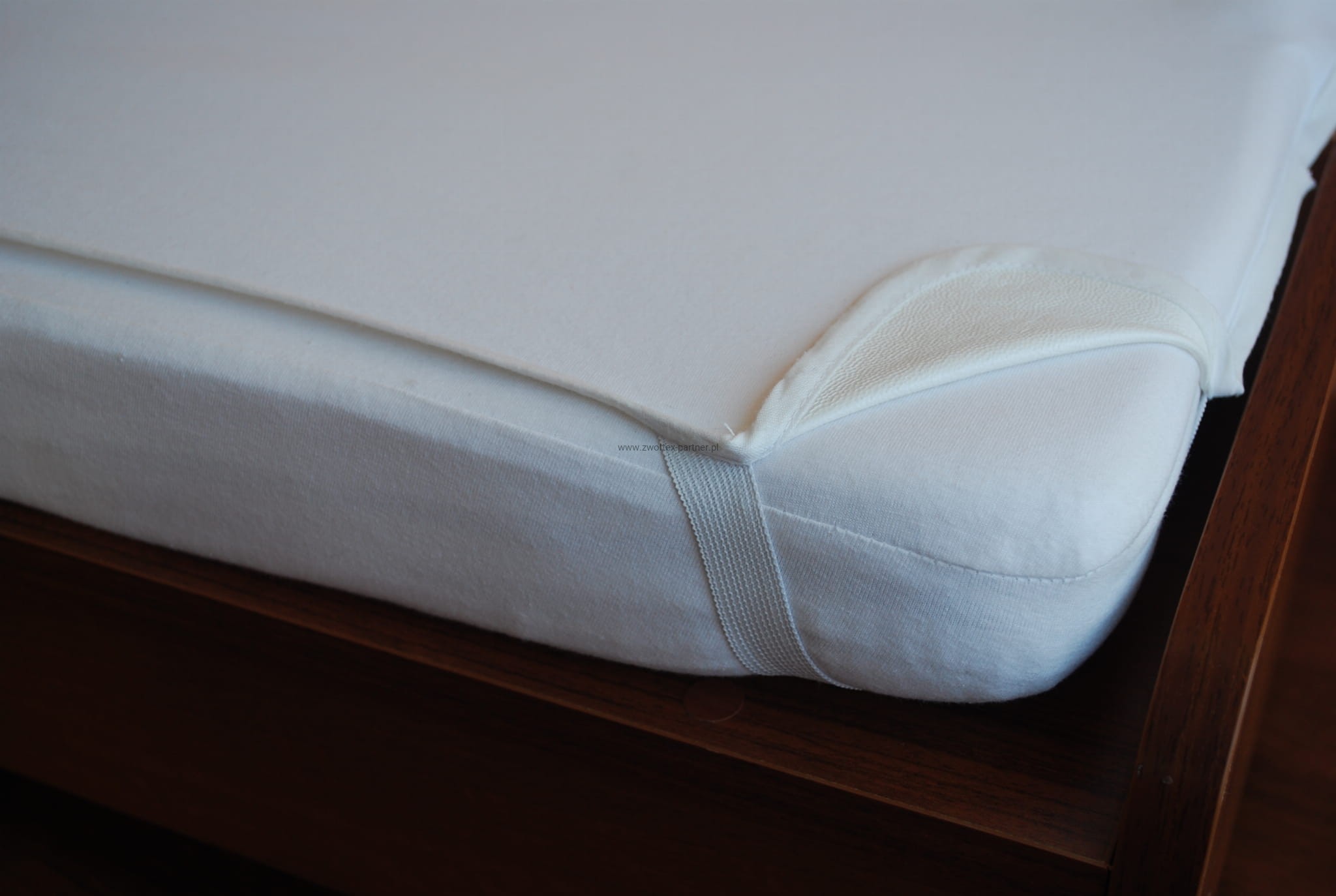 Ochraniacze mocowane są do materaca za pomocą gum przytrzymujących wszytych na rogach, lub w pełnym obszyciu z frotty lub jerseyu.