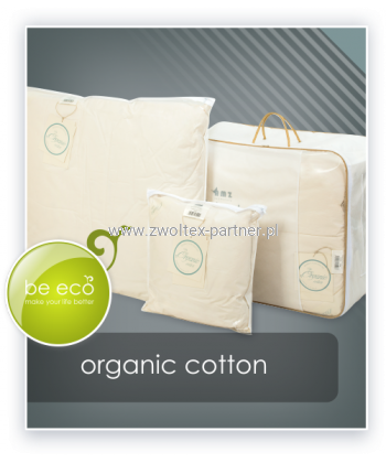 Kolekcja ORGANIC COTTON pokryta jest wyjątkowo miękkim inletem o wyjątkowo pięknym kolorze niebielonej bawełny – delikatny krem. Skład tkaniny to 100% bawełna organiczna o szlachetnym splocie batystowym. Ten delikatny splot i najwyższa jakość przędzy uprawianej metodami tradycyjnymi zapewnia tkaninie niesamowitą delikatność.