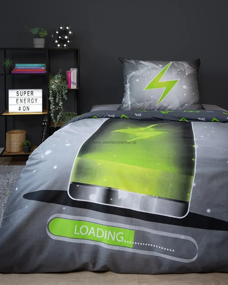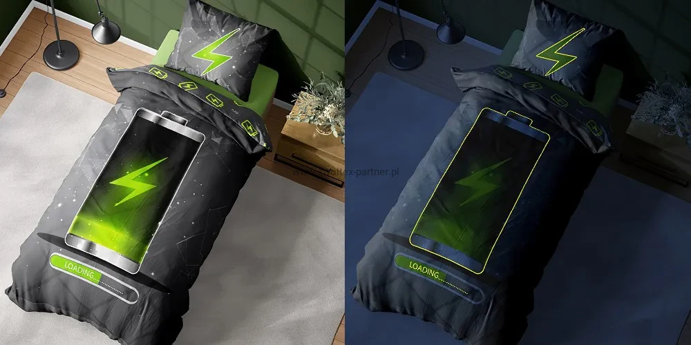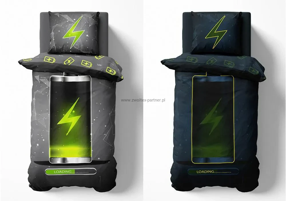 Pościel bawełniana 160x200 BATERIA smartfon SZARA- świecąca w ciemności