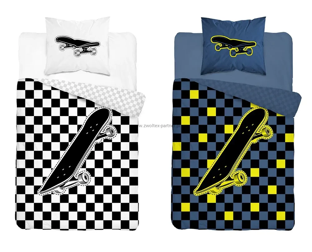 Pościel bawełniana 160x200 Deskorolka czarno biała- świecąca w ciemności