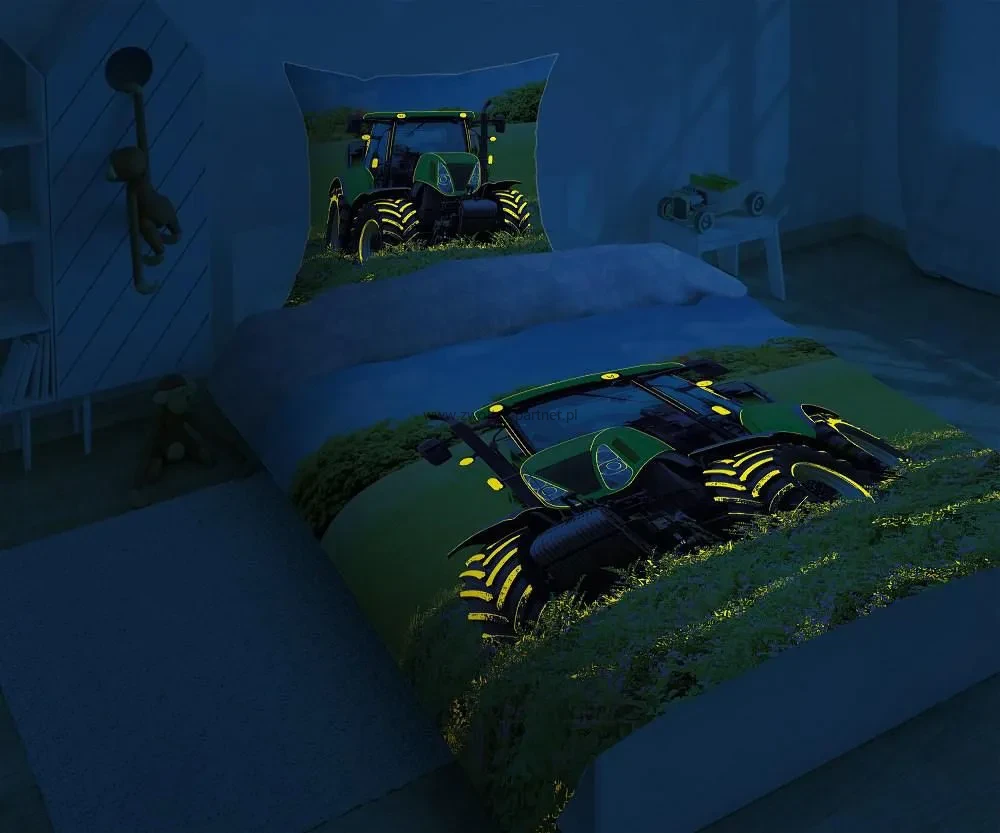 Pościel bawełniana 160x200 TRAKTOR NA POLU -świecąca w ciemności