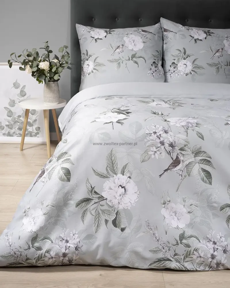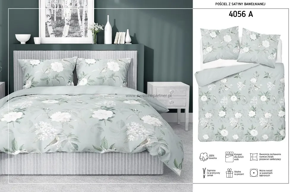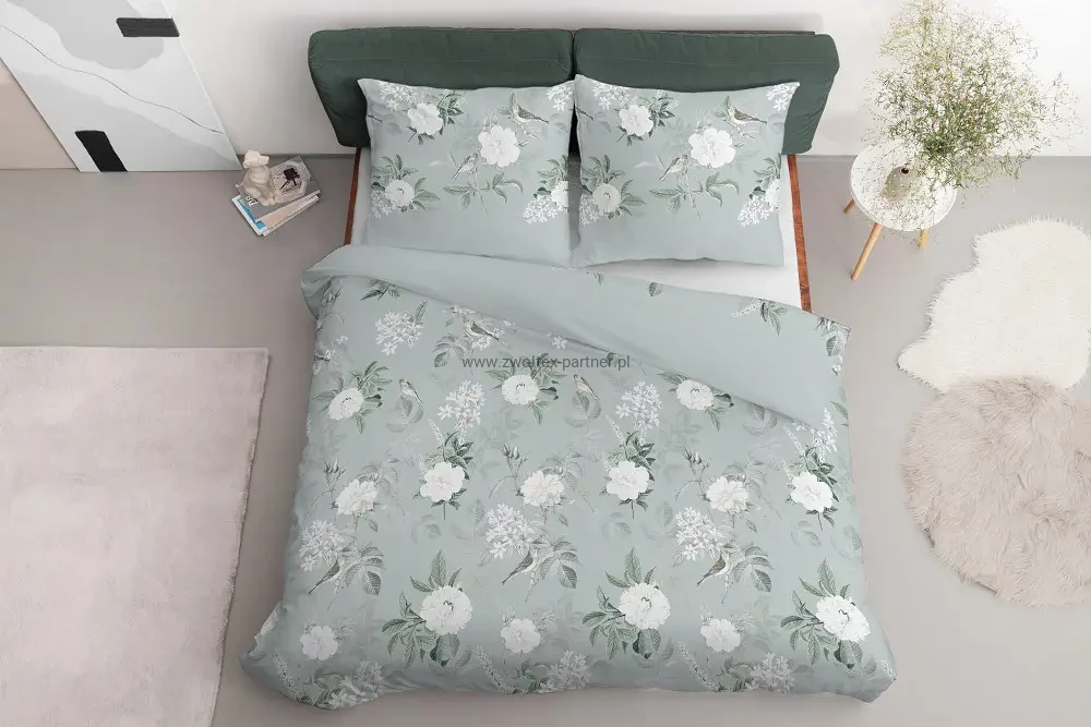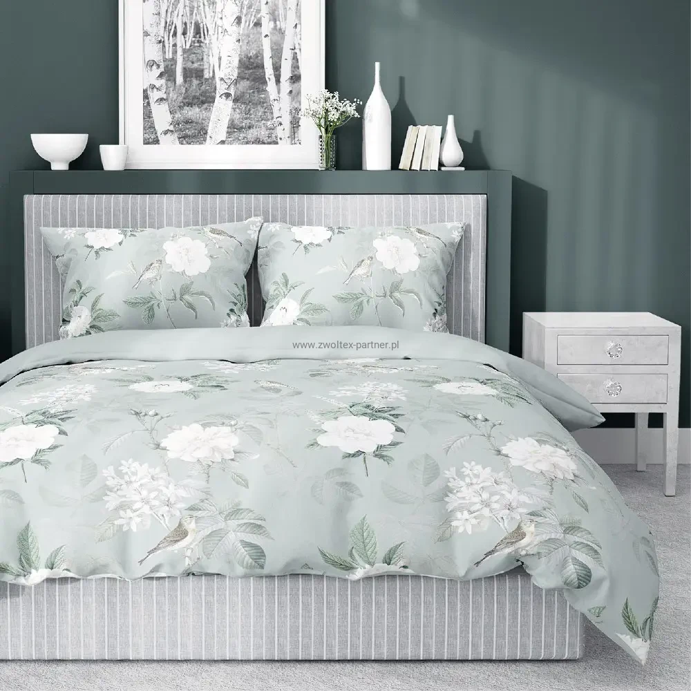 Pościel satynowa 160x200 Kwiaty miętowa biała 4056 A Home Satin 124