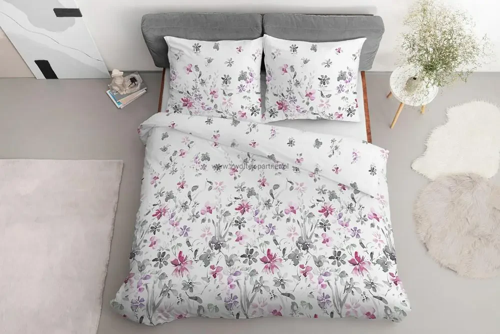 Pościel satynowa 160x200 Łąka szara różowa biała 4035 B Home Satin 120