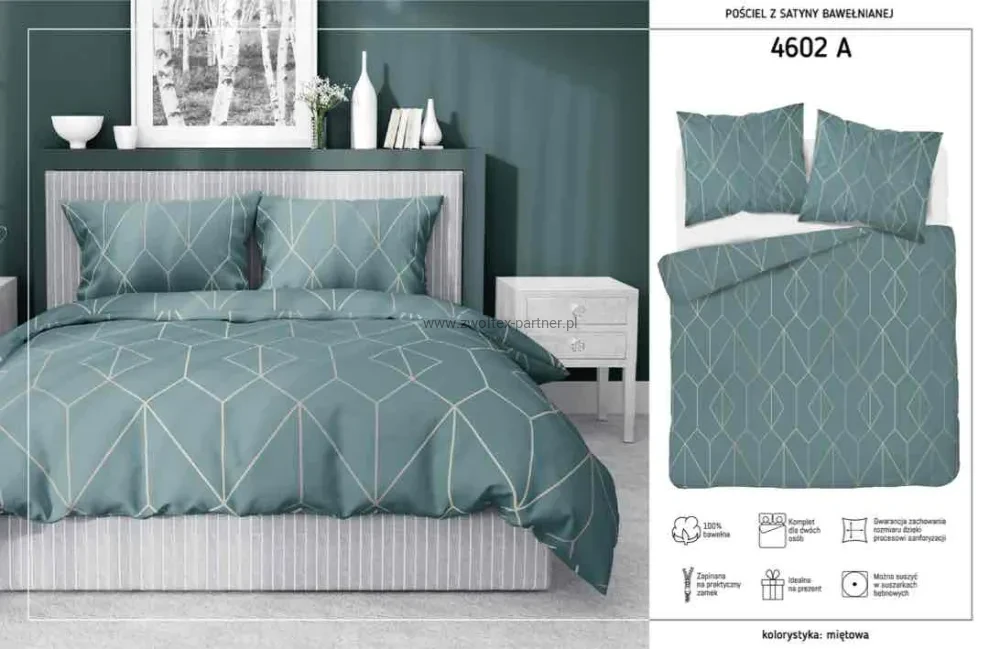 Pościel satynowa 160x200 miętowa wzór geometria 4602 A Home Satin 64
