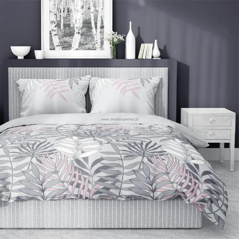 Pościel satynowa 160x200 szara różowa pudrowa liście 3550 C Home Satin 08