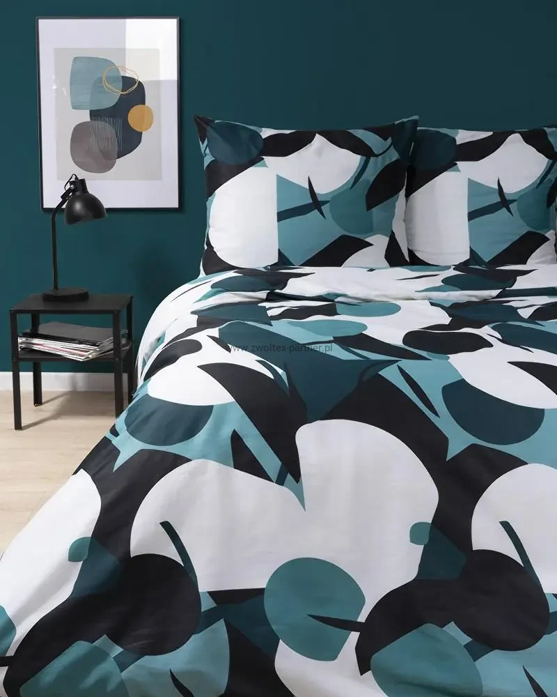 Pościel satynowa 160x200 turkusowa ciemna geometria 4199 A Home Satin 08