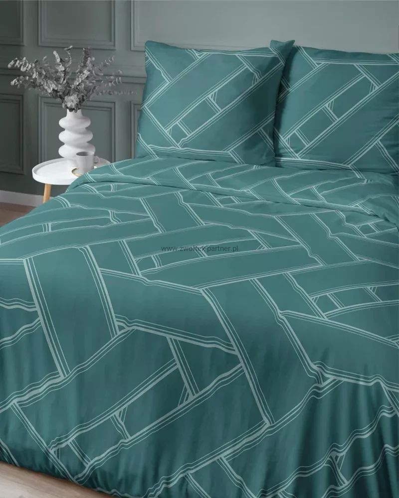 Pościel satynowa 160x200 turkusowa wzór geometria 4911 A Home Satin 80