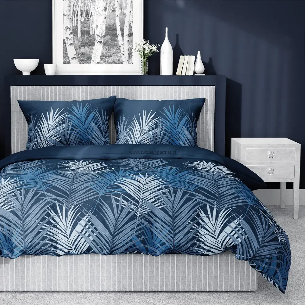 Pościel satynowa 220x200 4127 B niebieskie liście Home Satin 001